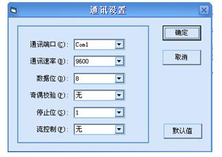 通訊端口可根據(jù)串口線所連接的計(jì)算機(jī)串口設(shè)置串口號(hào)。點(diǎn)擊確定按鈕,存儲(chǔ)新的設(shè)定值并退出本窗體。其它通訊設(shè)置在儀器出廠前已設(shè)置好,請(qǐng)勿隨意改動(dòng)!點(diǎn)擊默認(rèn)值按鈕可恢復(fù)初始設(shè)置。點(diǎn)擊取消按鈕,將不對(duì)設(shè)置進(jìn)行修改并退出本窗體。