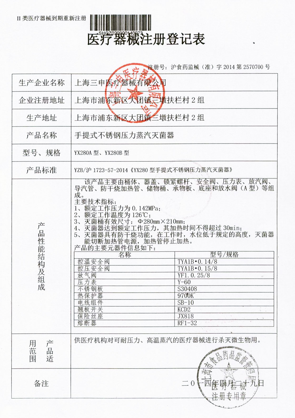 容積:15/24L定時數(shù)控 有醫(yī)療器械產(chǎn)品注冊證和特種設(shè)備制造許可證(壓力容器)