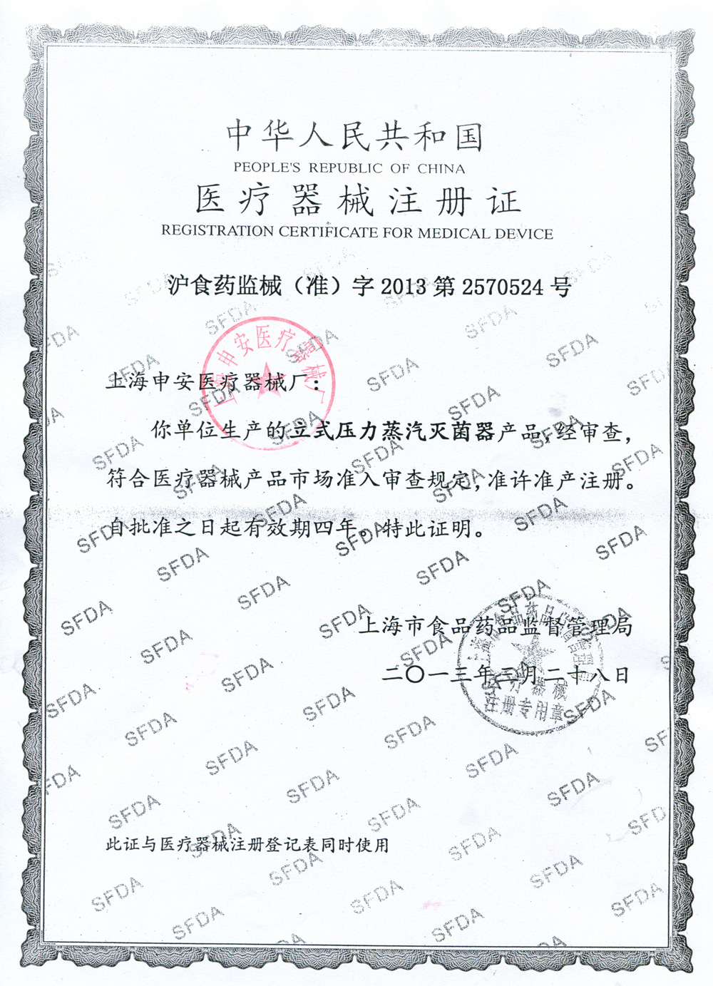 滬食藥監(jiān)械(準)字2013第2570524號